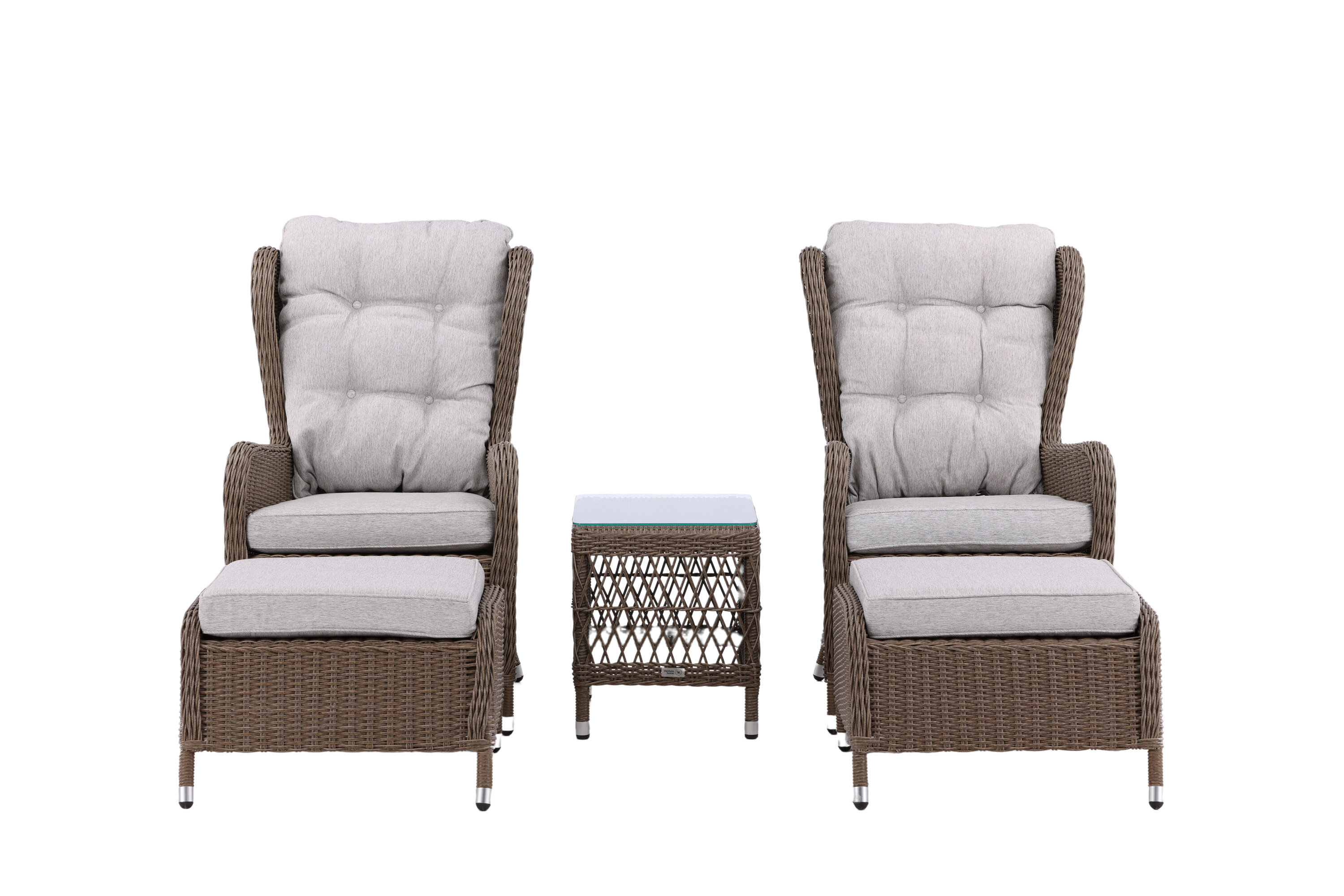 Washington is an exclusive lounge set with a combination of timeless design and a fantastic comfort to your patio or patio. The lounge set consists of two armchairs, two footstools including soft sand -colored pickled cushions and a side table with a glass table top. The lounge set is made of an aluminum frame and natural colored artificial ratio - as durable as stylish! Care advice: Konstrite is a plastic material that is perfect for our Scandinavian climate. The material is UV-resistant and can withstand weather and wind. The fact that it is UV-resistant means that the furniture does not fade, however, we always recommend storing the furniture under a furniture protection or otherwise dry and cool-to extend the service life.