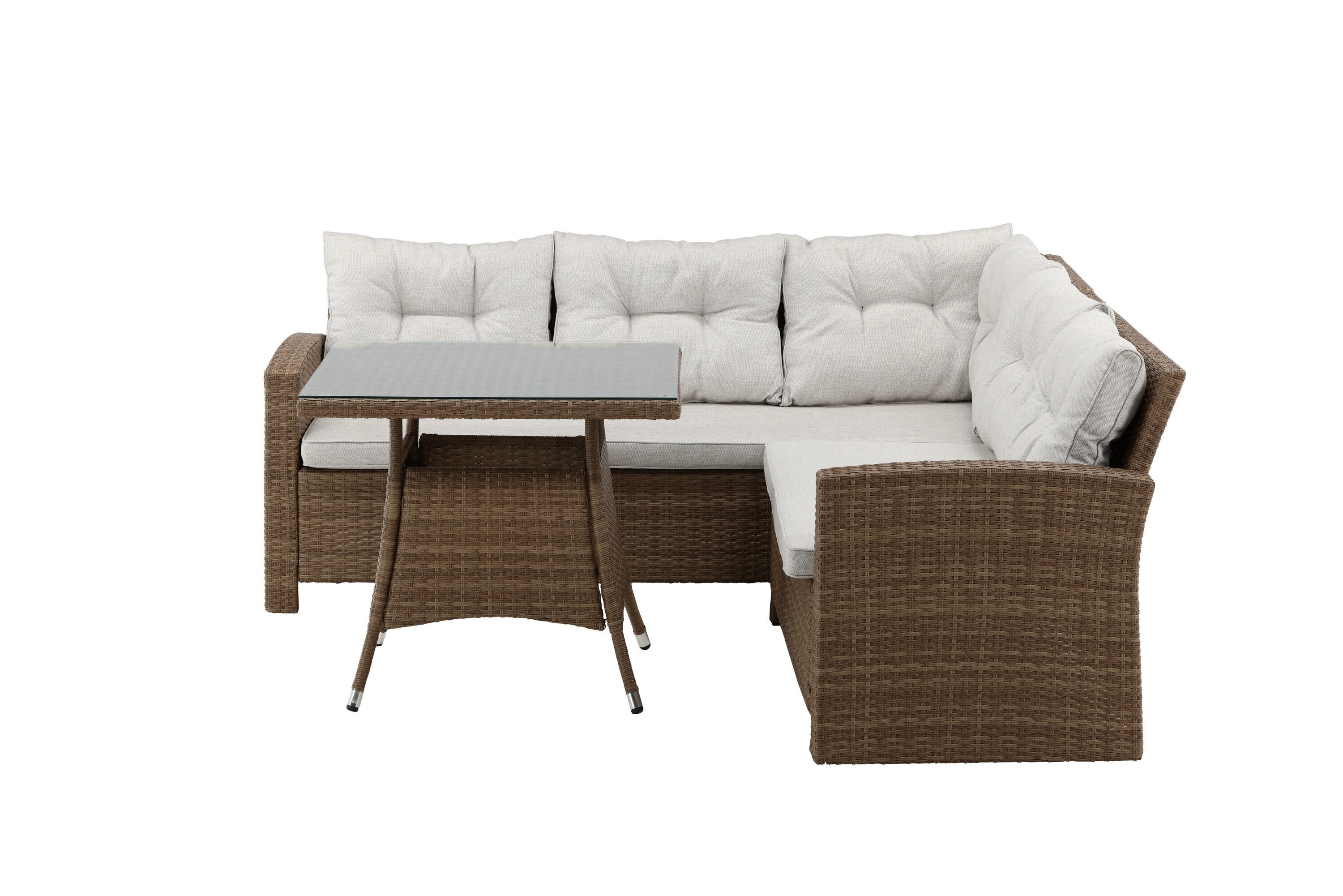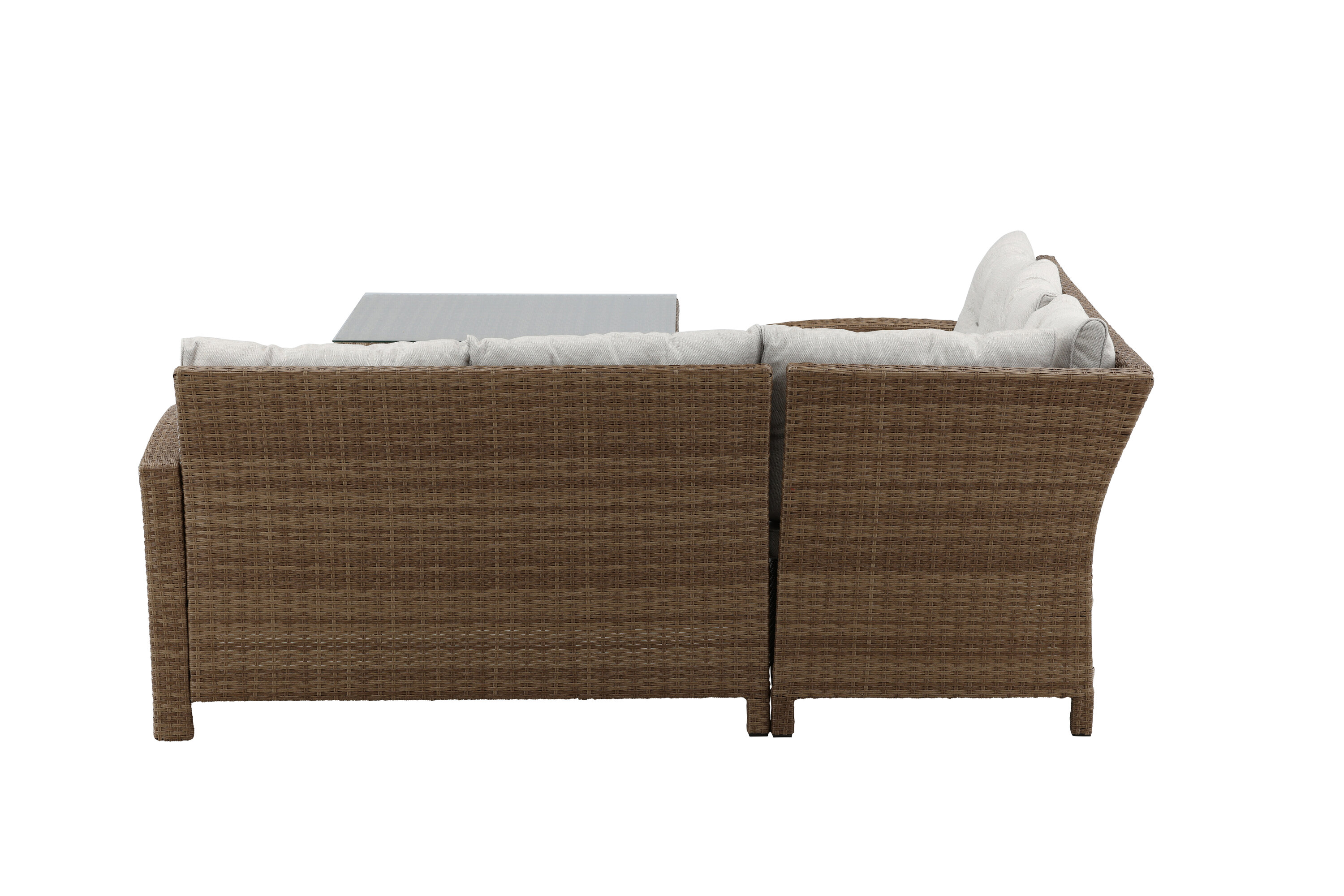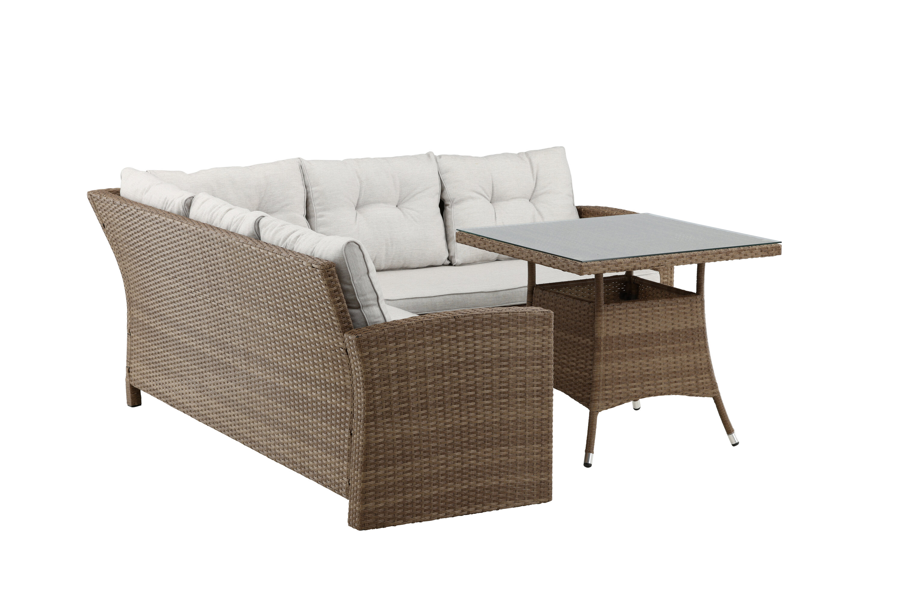 Watford sofa group is great for your patio or patio and is created with a focus on comfort and timeless deis. The sofa group consists of a corner sofa in natural -colored artificial rattan with 5 seats and a corner part as well as a higher table in artificial rattan with a relief shelf and a glass table. Sand -colored pickled cushions are included to the sofa group and contribute to an inviting eye -catcher! Care advice: Konstrite is a plastic material that is perfect for our Scandinavian climate. The material is UV-resistant and can withstand weather and wind. The fact that it is UV-resistant means that the furniture does not fade, however, we always recommend storing the furniture under a furniture protection or otherwise dry and cool-to extend the service life.