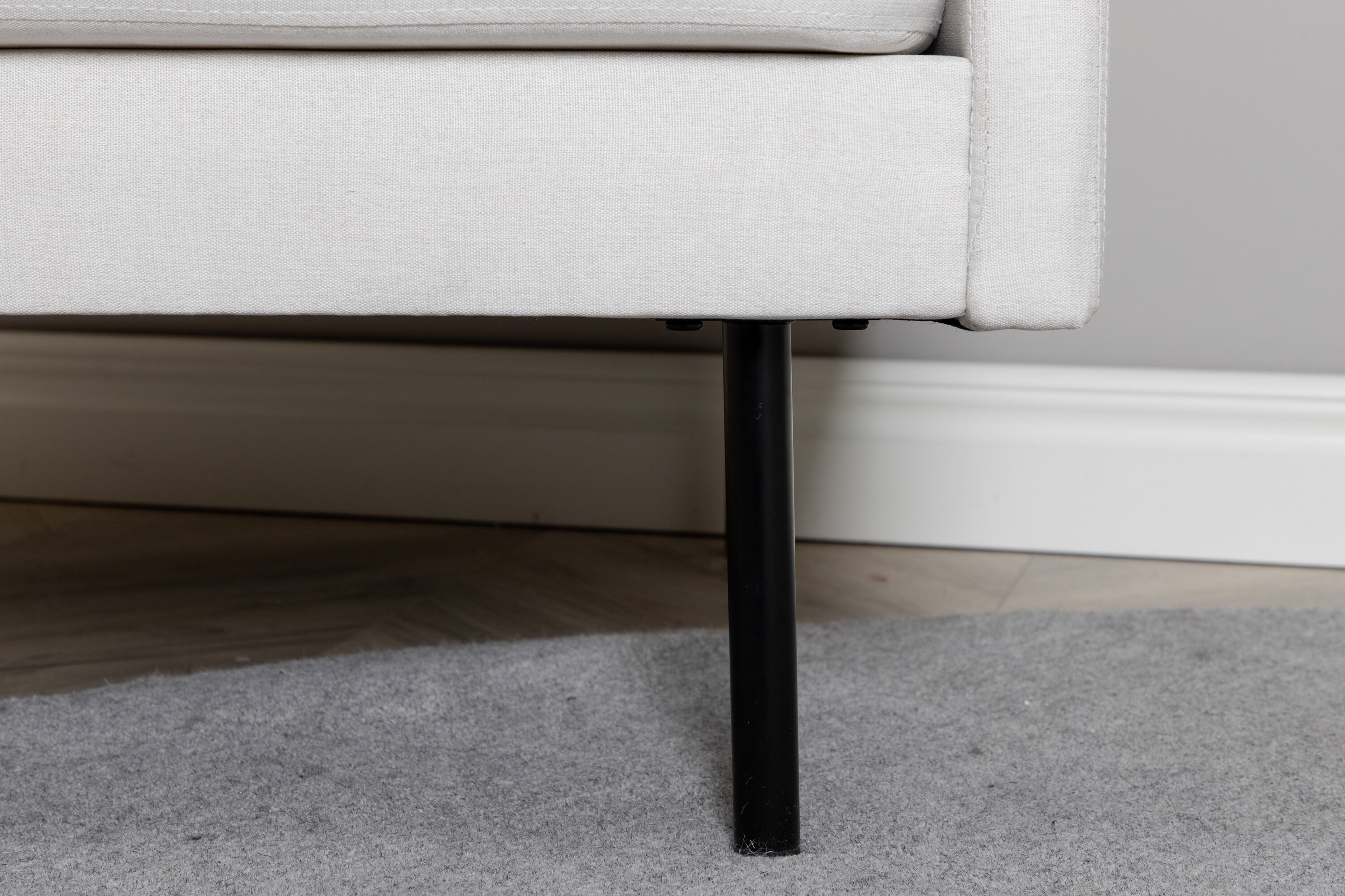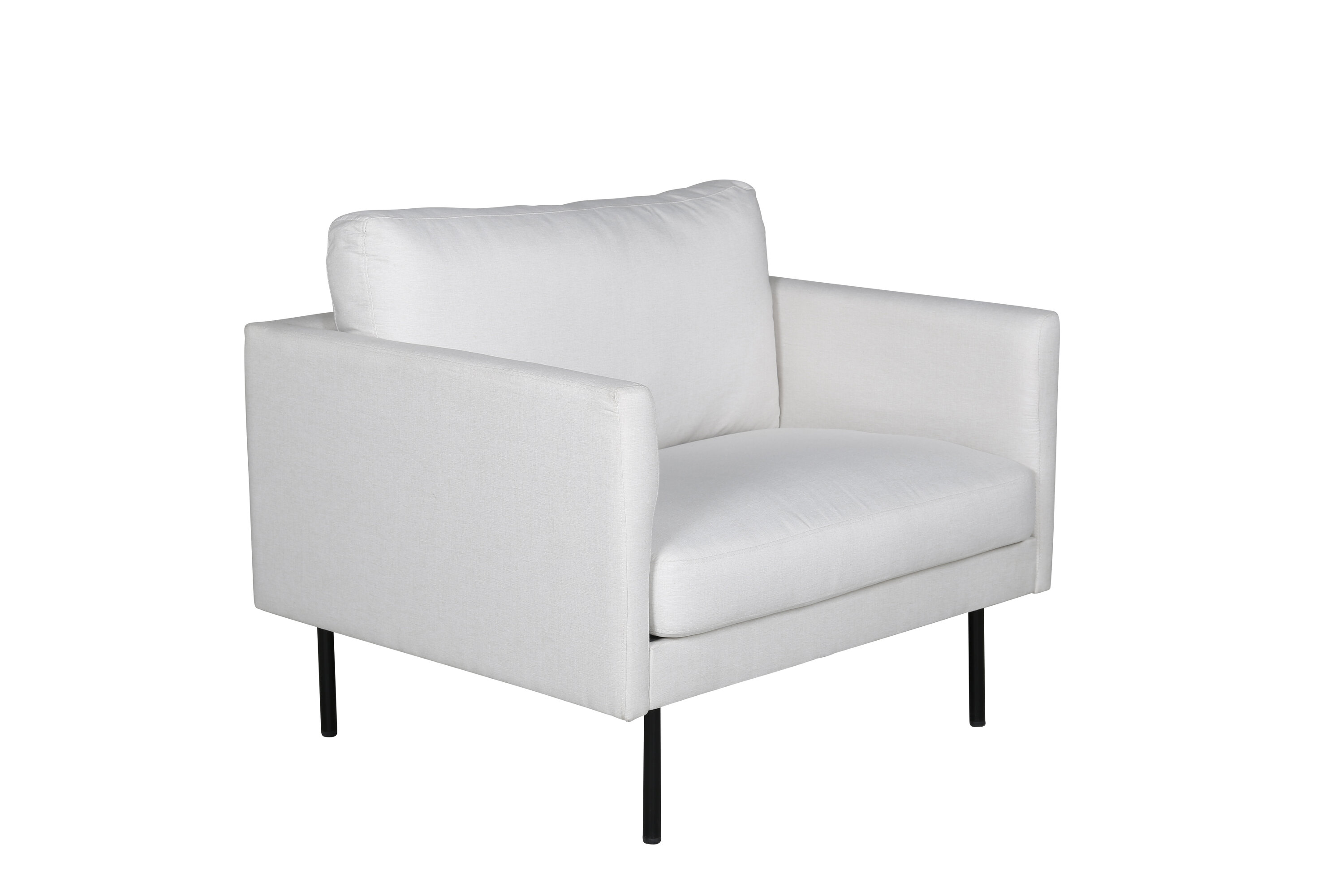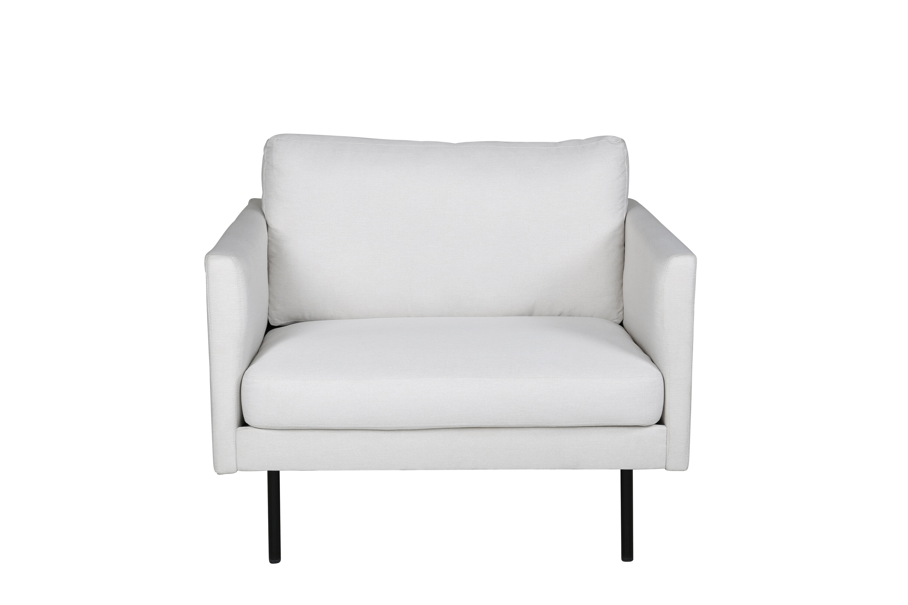 The armchair Zoom is designed completely according to the trends! This delicious style icon combines straight Nordic design with soft shapes and high sitting comfort - what more can you want? Made of bone -white fabric and stylish narrow, black metal legs that provide an elegant height to the armchair. Sink down after a long day and enjoy a comfortable and stylish armchair that is easy to match with other decor! Polyester fabric tips: Use textile spray to impregnate the textile before you start using it, it will also make any dirt and stains easier to remove in the future. Remove stains right away, do not rub but tried to suck up gently with a cloth.